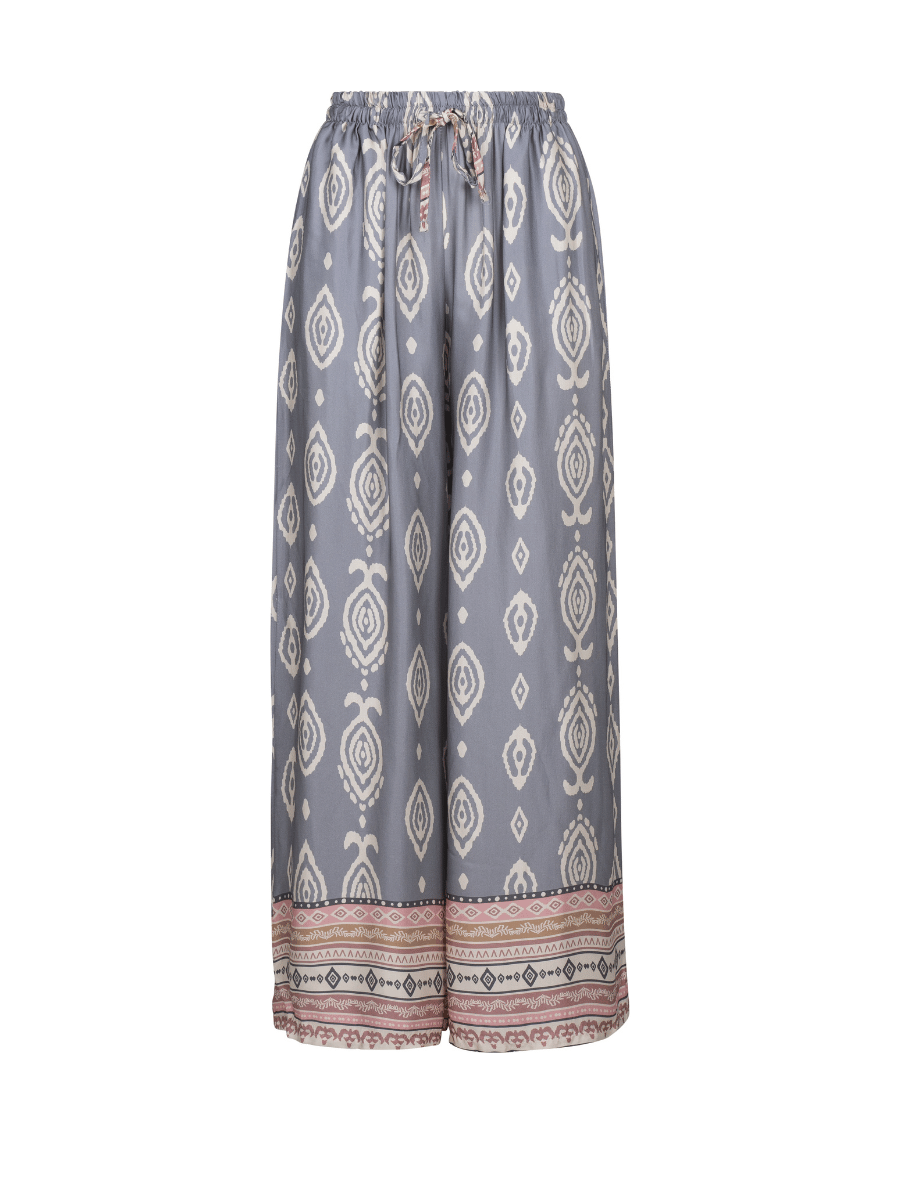 Astrid Boho Wide Leg Pants Grey Print 1760