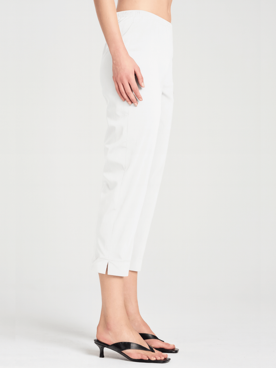 This cropped, straight-fit Mela Purdie pant is crafted from crisp stretch cotton for a clean, minimalist silhouette. Designed with an elasticised waistband for comfort and finished with subtle hem splits, this polished style delivers effortless sophistication for everyday wear.