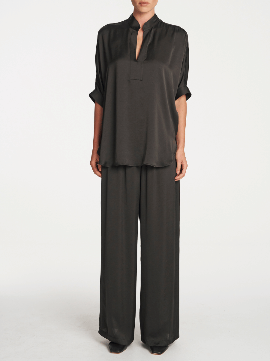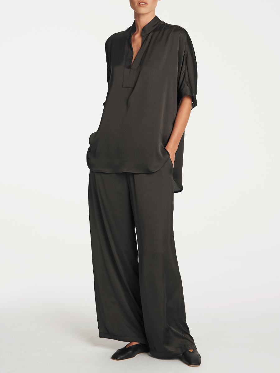 Style it as a coordinated set with the Mela Purdie Soft Shirt in Mink Mirror Satin for a sophisticated tonal look, or pair with lightweight knits, silk tops, or structured blazers for effortless day-to-evening dressing.