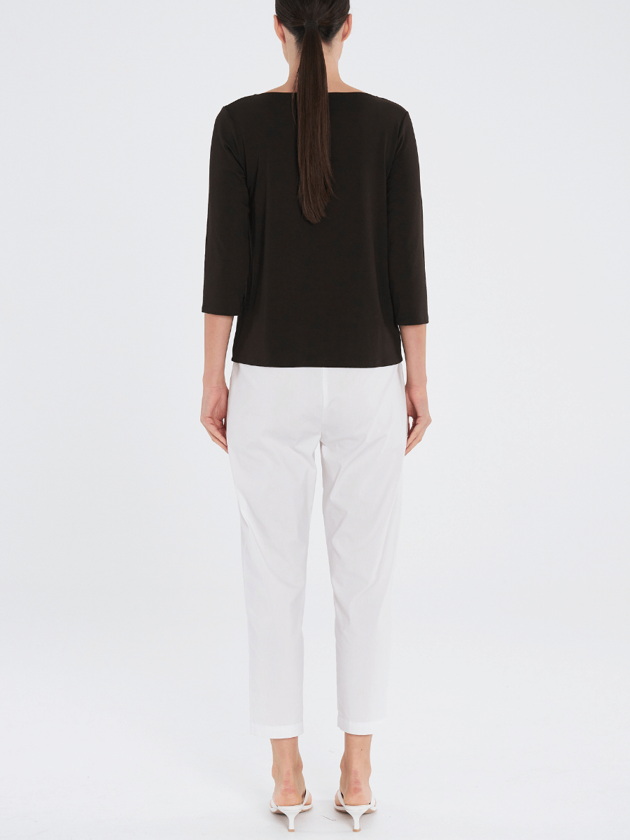 Designed for versatility, the Relaxed Boat Neck Top pairs effortlessly with tailored trousers for office wear, or with denim, culottes, or soft leisure pants for relaxed weekend dressing. Its simple lines and structured neckline make it a reliable staple for year-round styling.