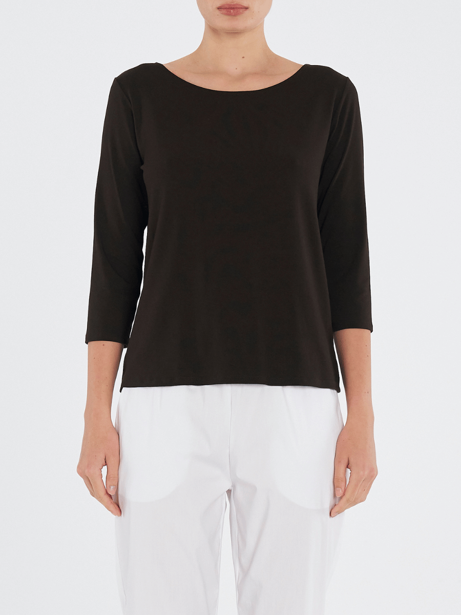3/4 Sleeve Relaxed Boat Neck Top in Fudge Brown