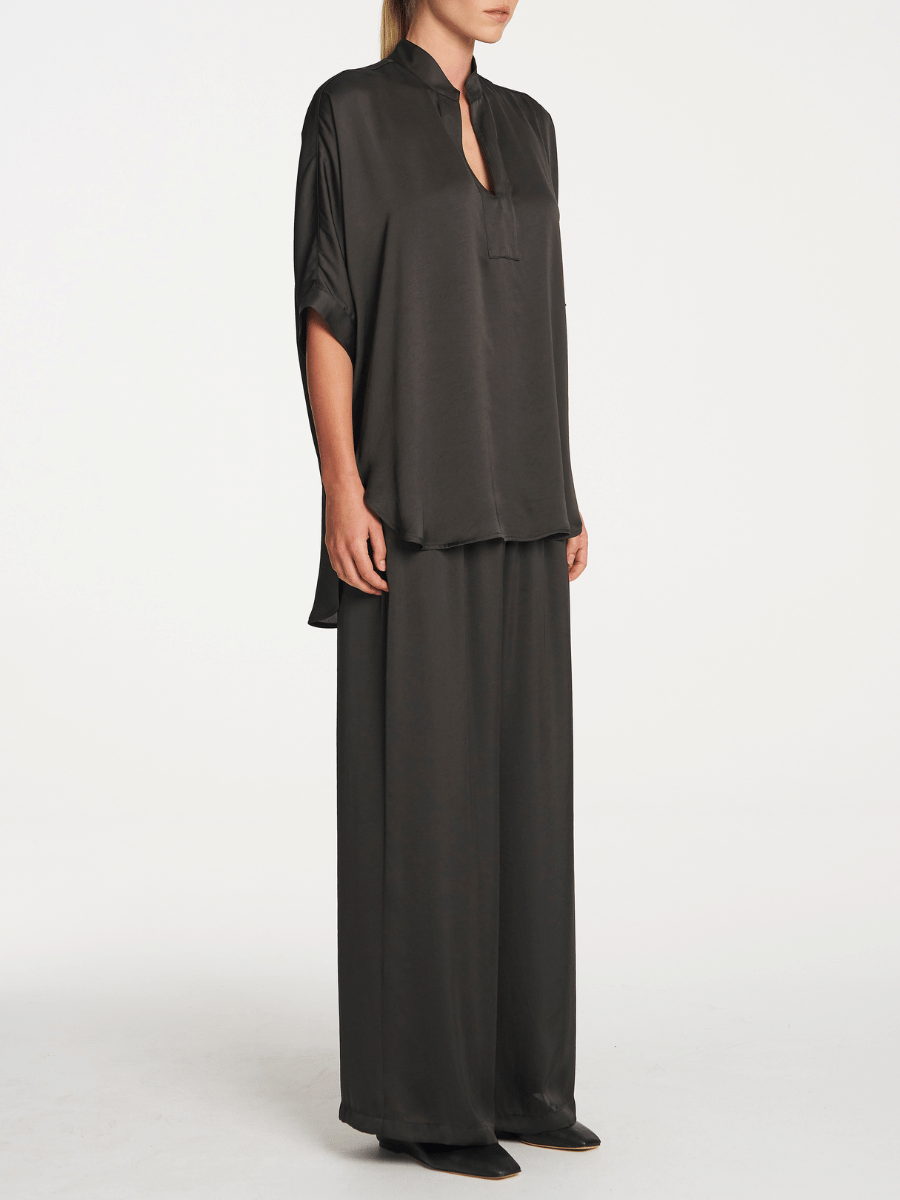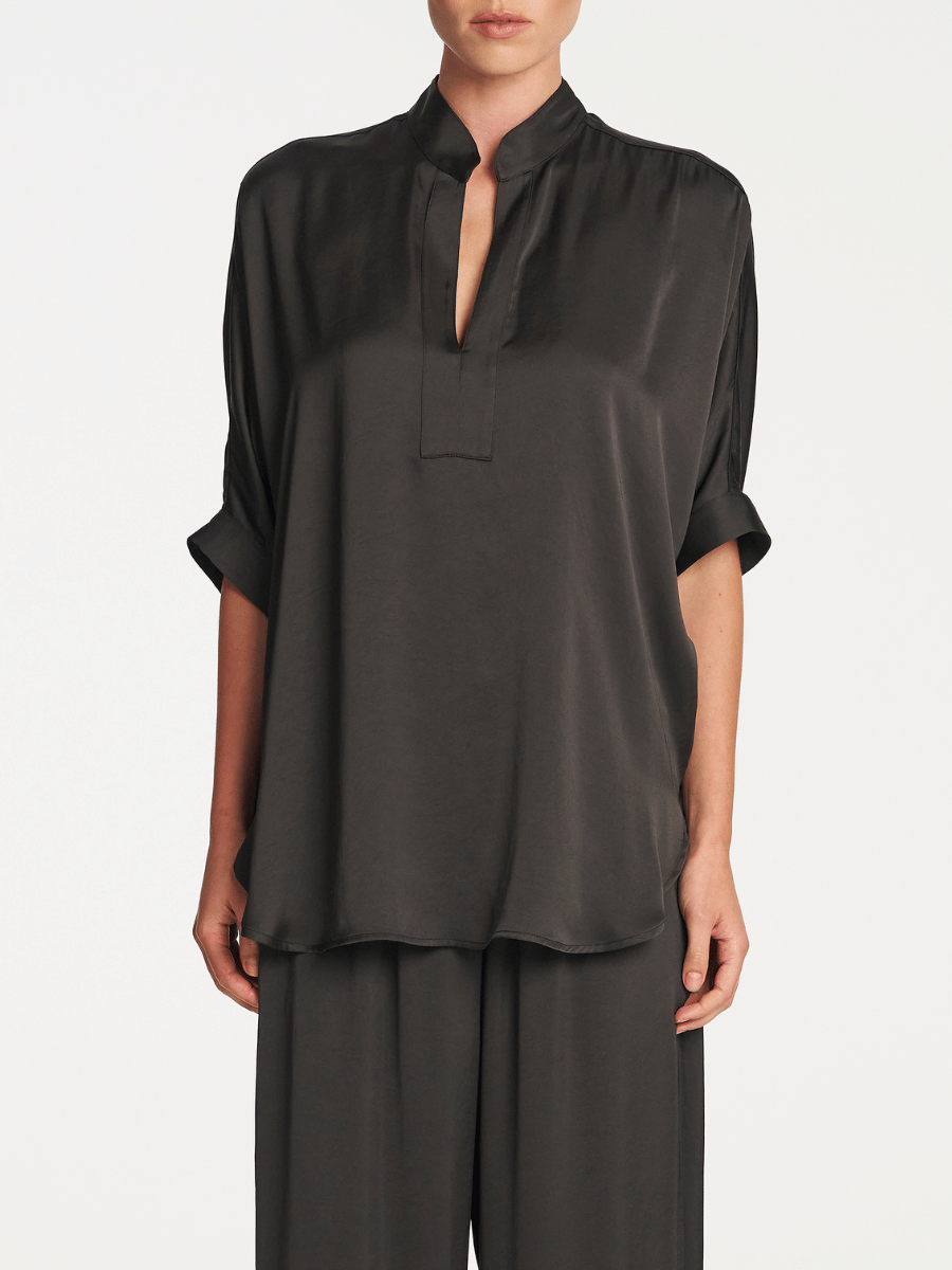 Mela Purdie Villa Tabbard Mirror Satin Top in Mink