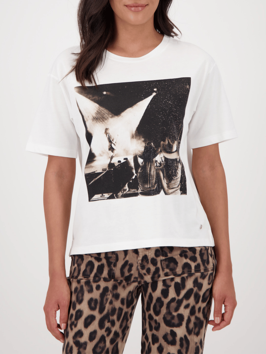 Monari Embellished Rockstar Graphic T-Shirt in Off White 808797