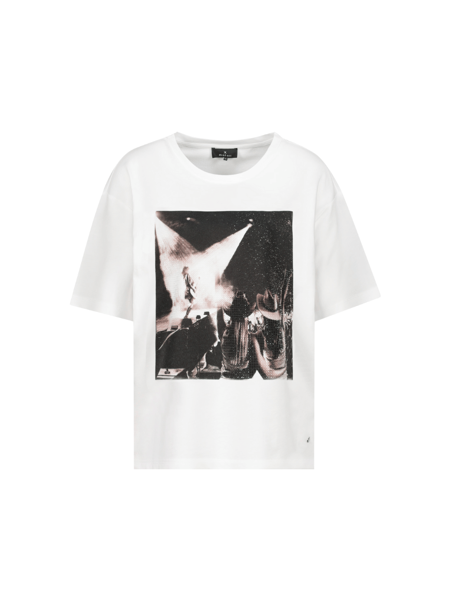 This short-sleeve regular-fit Monari t-shirt in off white features a classic crew neckline with a statement rockstar graphic, finished with bead embellishment that adds subtle texture and definition. Designed for everyday wear, this Monari graphic t-shirt balances clean lines with decorative detailing for a polished casual finish.