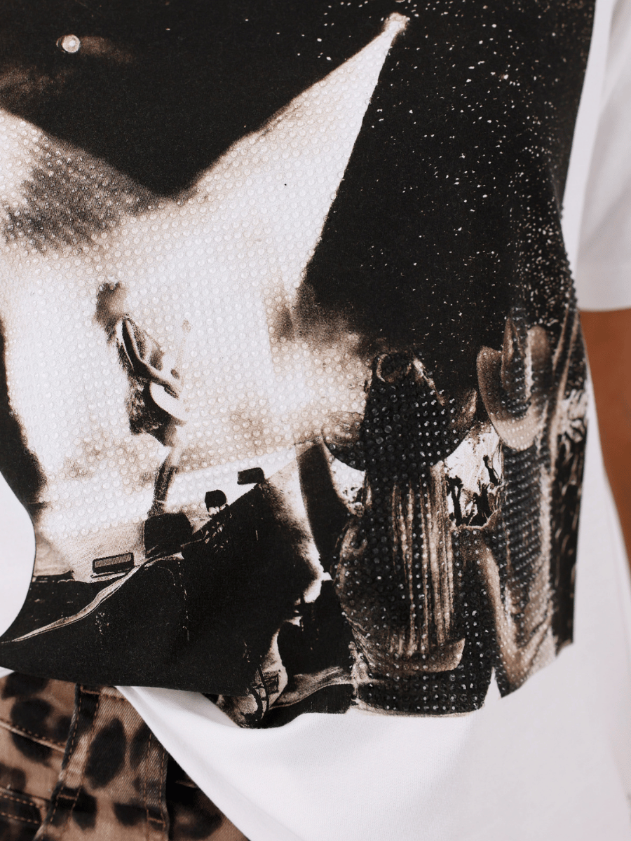 Embellished Rockstar Graphic T-Shirt in Off White