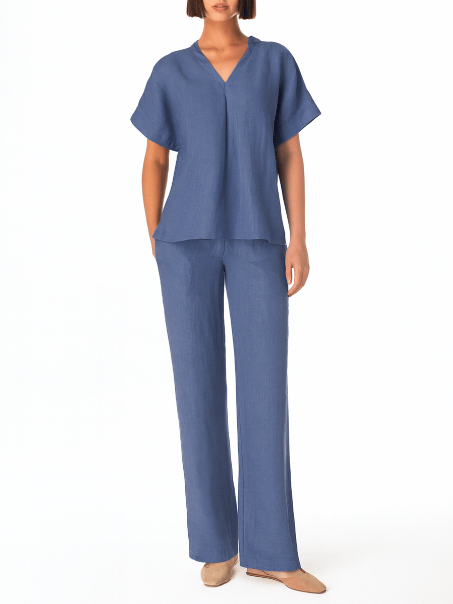 Haris Cotton Solid Wide Leg Linen Pants Lapis 0763