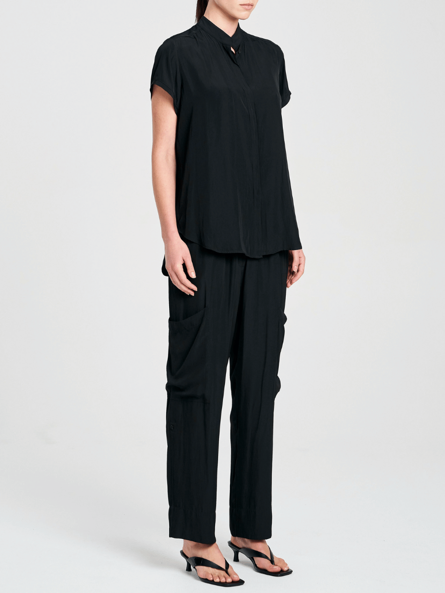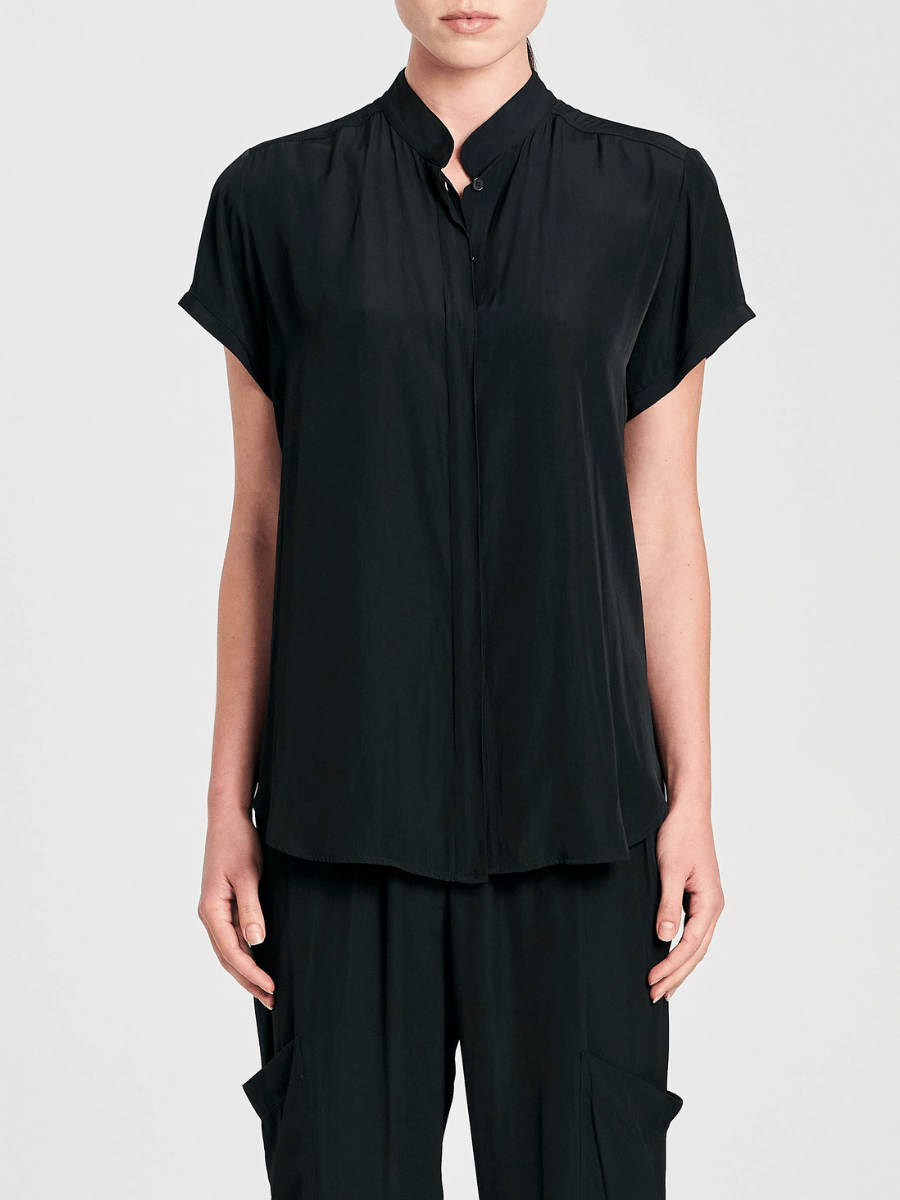 The Mela Purdie Soft Stand Shirt in Black features: