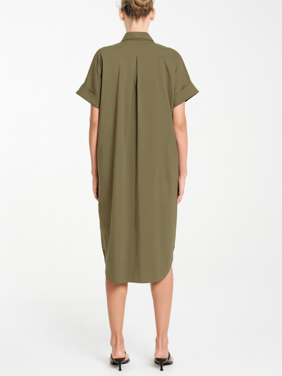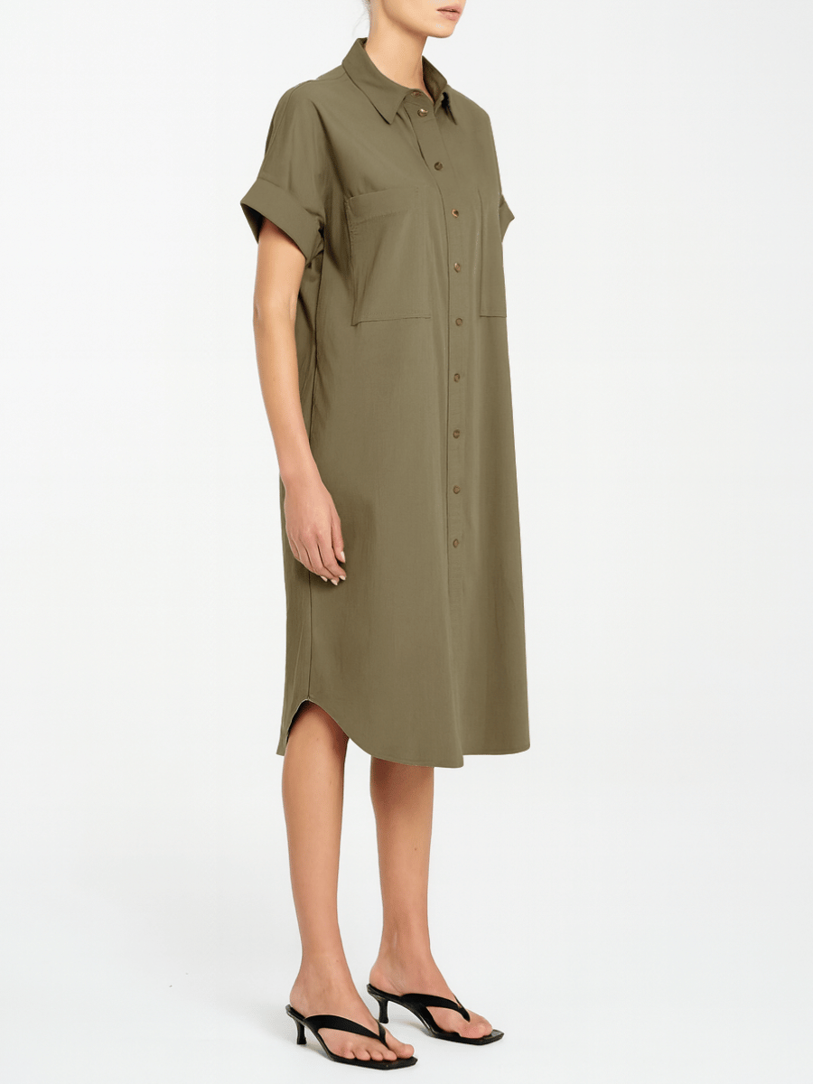 Short Sleeve Stud Shell Shirt Dress in Fossil 3028