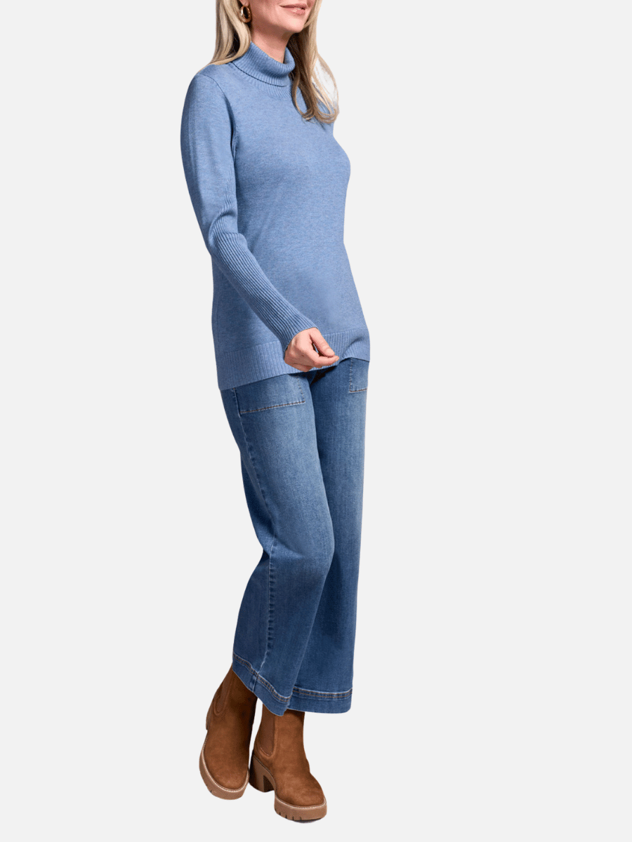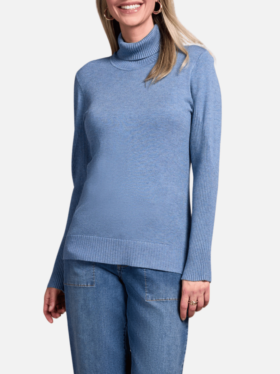 Lightweight Turtleneck Knit Sweater in H Slate Blue 835