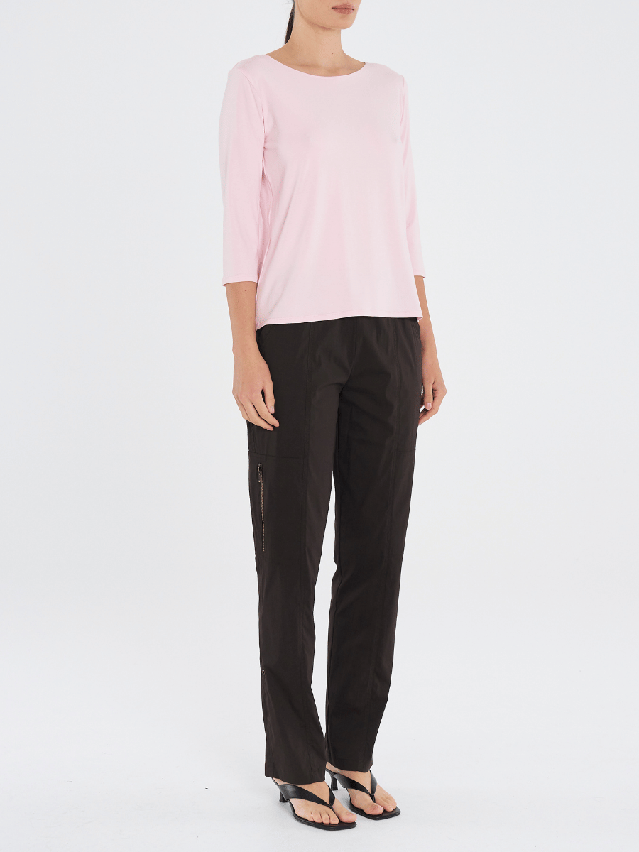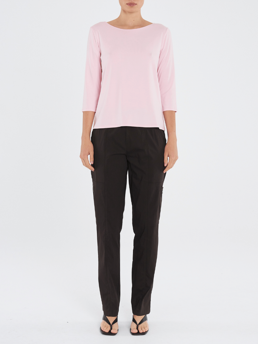 This cropped tapered fit Mela Purdie pant features a standard rise, elastic waistband, and functional side pockets. Cut in French stretch cotton, the Nomad Pant offers comfort, breathability, and wrinkle resistance, making it an ideal choice for travel and everyday wear.