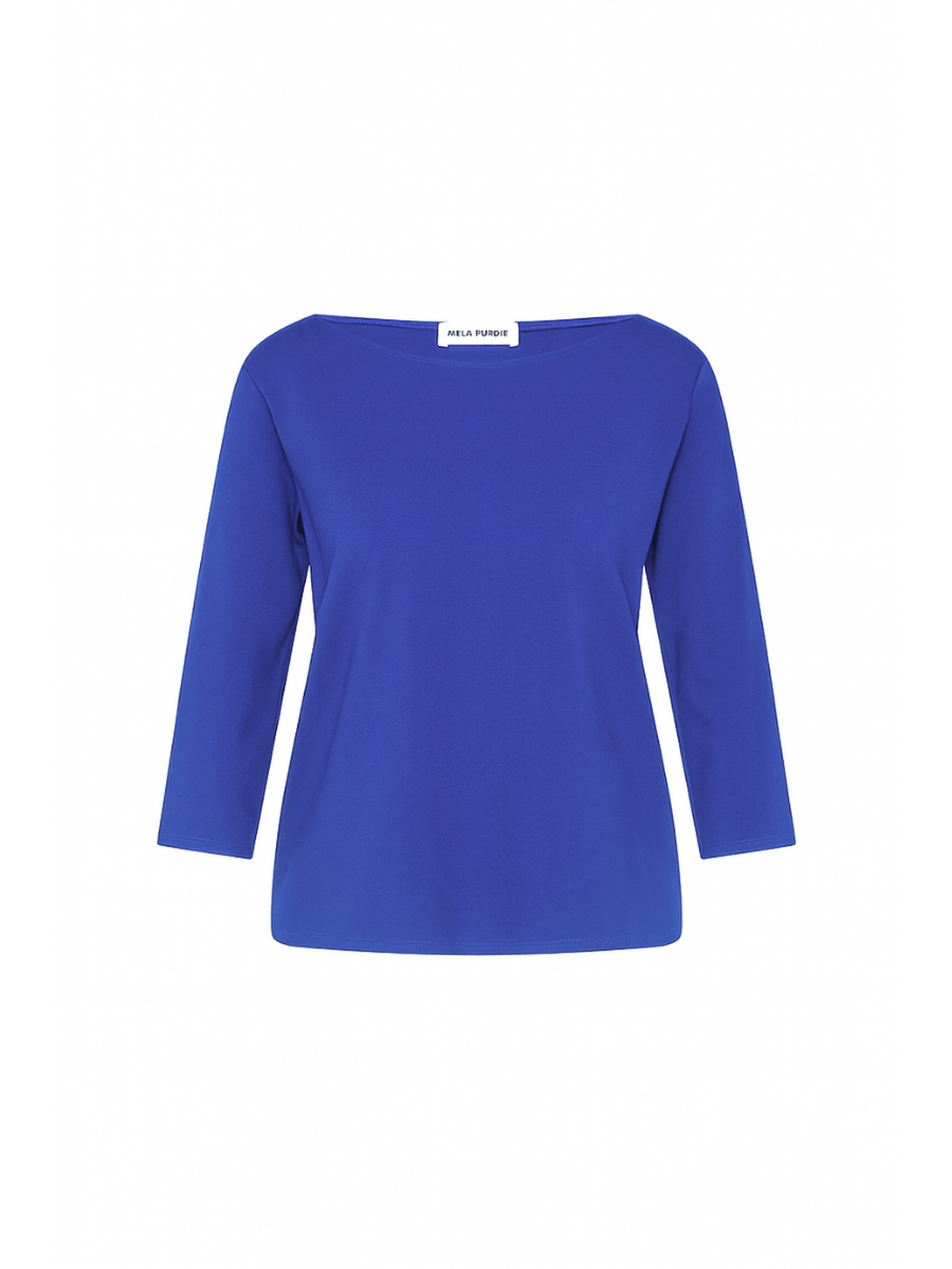 This 3/4 sleeve relaxed-fit Mela Purdie top features a classic boat neckline and a clean silhouette in a vibrant cobalt blue. Crafted in Soft Matte Jersey, the Mela Purdie Relaxed Boat Neck Top offers a smooth, fluid drape with comfortable stretch, making it an ideal everyday staple.