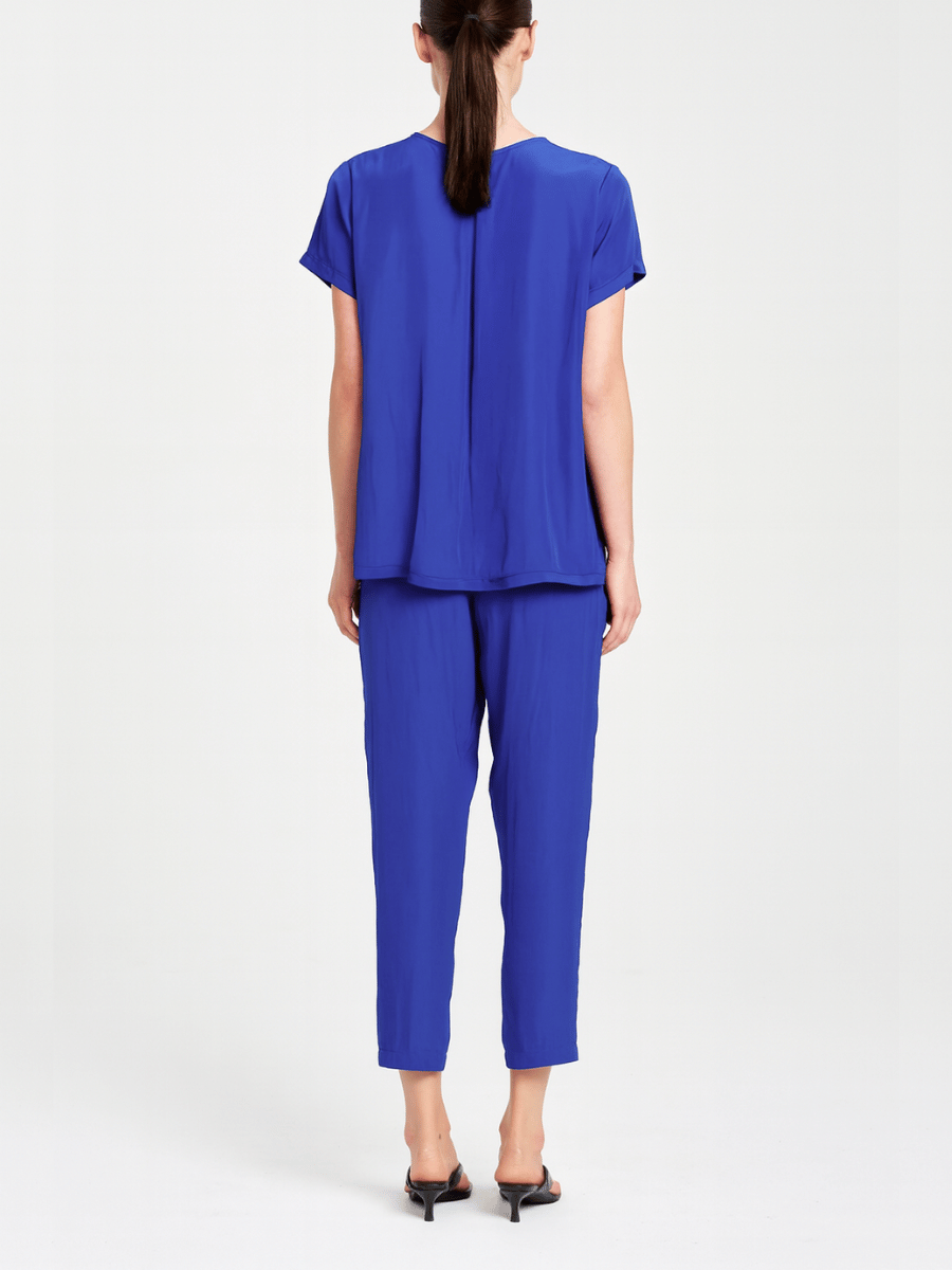 Cut in Mela Purdie’s lightweight Japanese Mache fabric, this top offers a smooth, breathable feel with a relaxed, unstructured fit. Pair the Mela Purdie Transit T with culottes or soft tailored pants for warm-weather outfitting and travel-ready dressing.