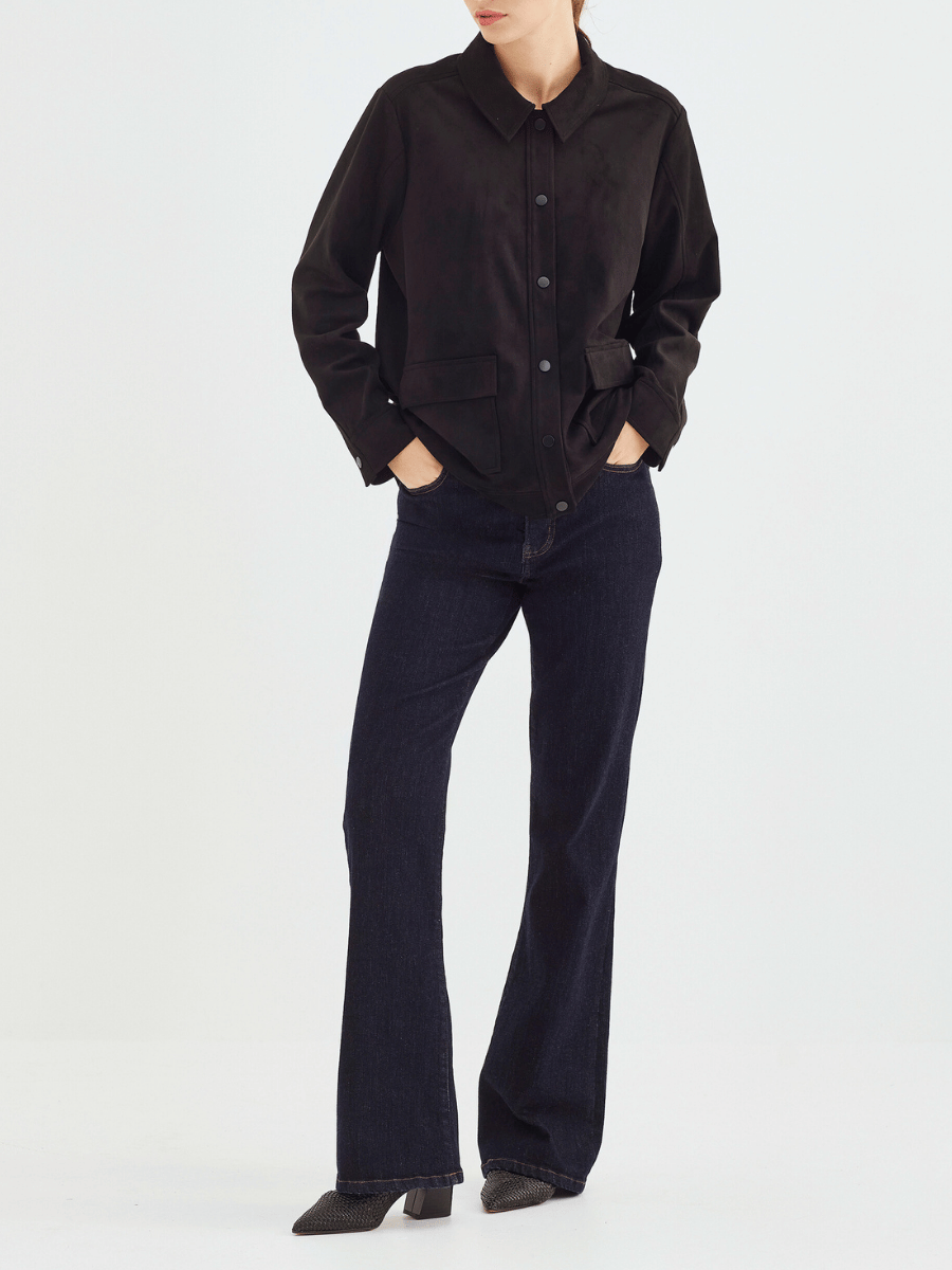 Crafted from premium soft faux suede, this jacket delivers the luxurious look and feel of real suede without the maintenance.