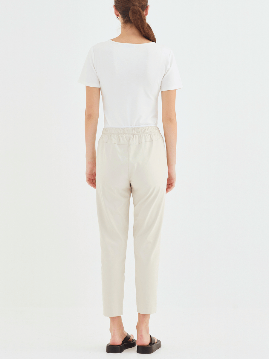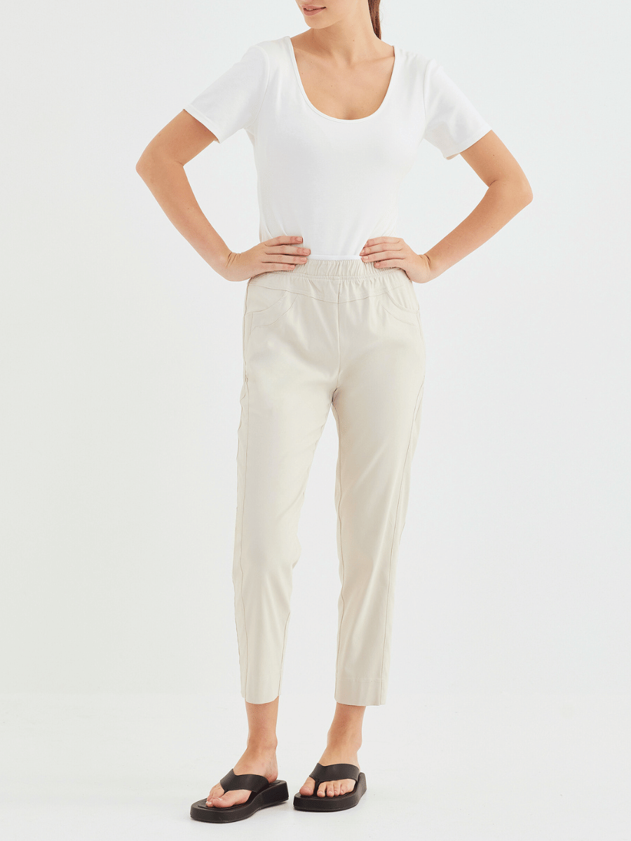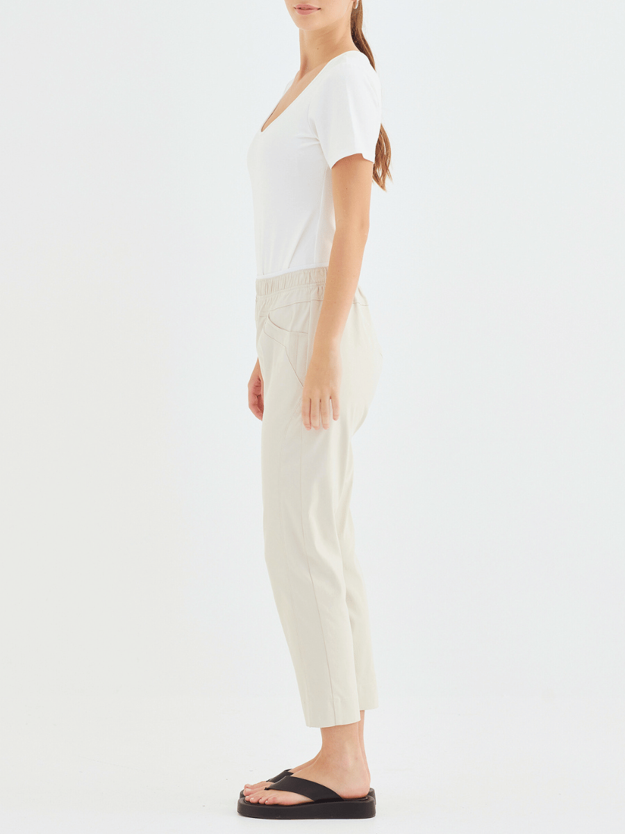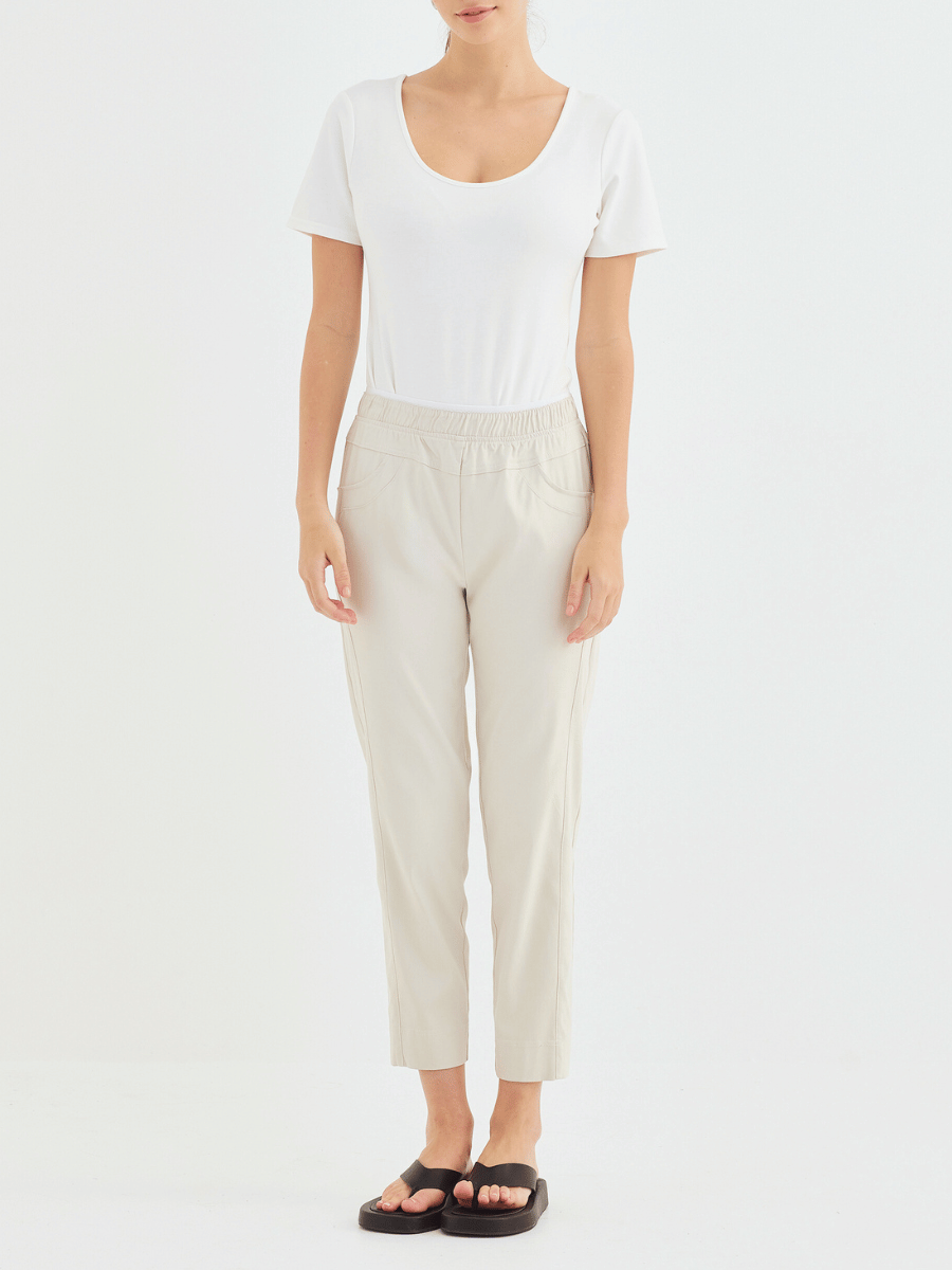 This Verge Pant features a super stretch, straight-leg design with an elasticated waistband for ultimate comfort. The ankle-length pant includes functional front pockets with a curved front pocket detail, offering both style and practicality.