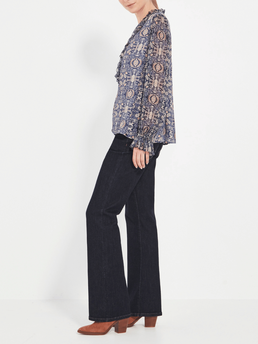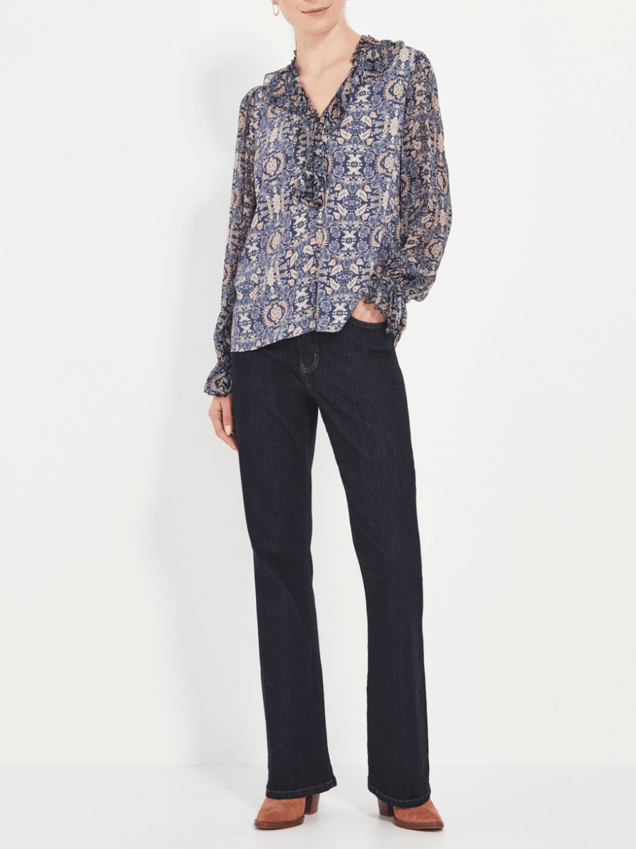 The elasticated cuffs, finished with a soft ruffle, create a beautifully detailed sleeve that balances ease with refinement. Lightweight and versatile, the Mercy Blouse pairs perfectly with soft pants, flowing skirts, or denim — a graceful piece for both everyday and elevated dressing.